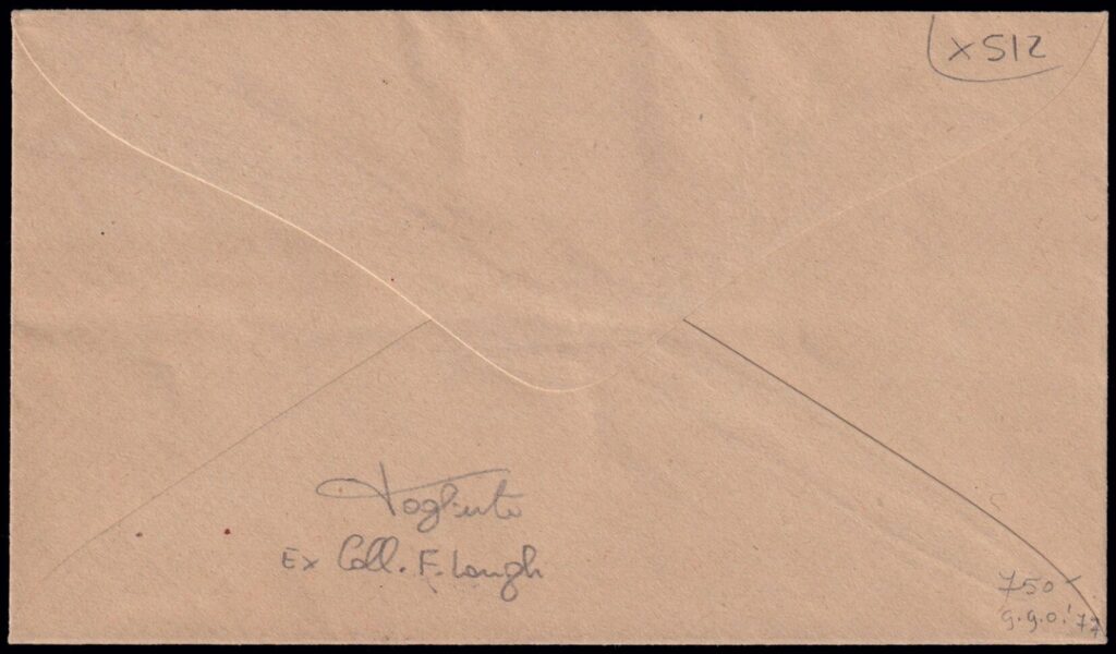 Gamaliel Noriega reprodujo en su artículo de 1934 la imagen de este sobre oficial, dirigida a su homólogo nicaragüense. Al tratarse de correspondencia oficial, carece de franqueo ordinario, pero lleva el matasellos de San José y la sobretasa verde sin anular. El sobre no presenta marcas de tránsito ni de recepción en el reverso.